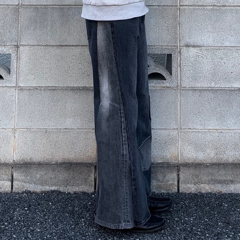 完全一点モノのリメイクパンツです。綺麗なフレアシルエットです。