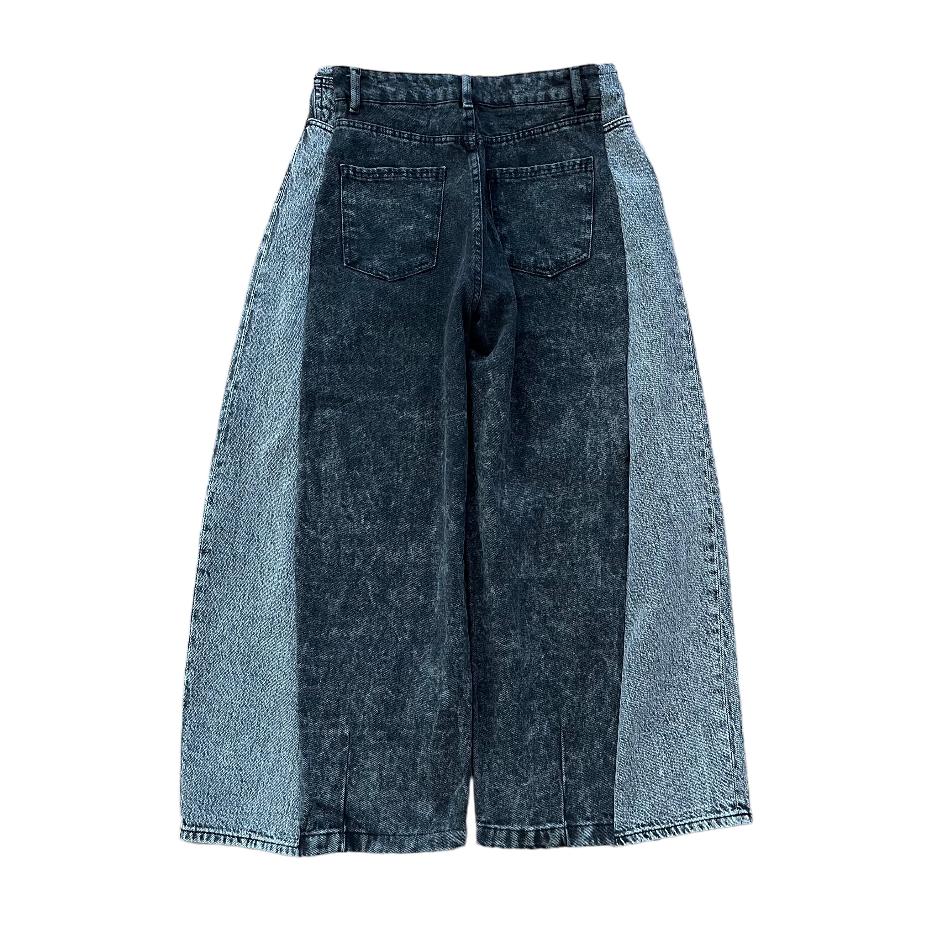完全一点モノのリメイクパンツです。股上が深く、ストンっと落ちるようなシルエットです。