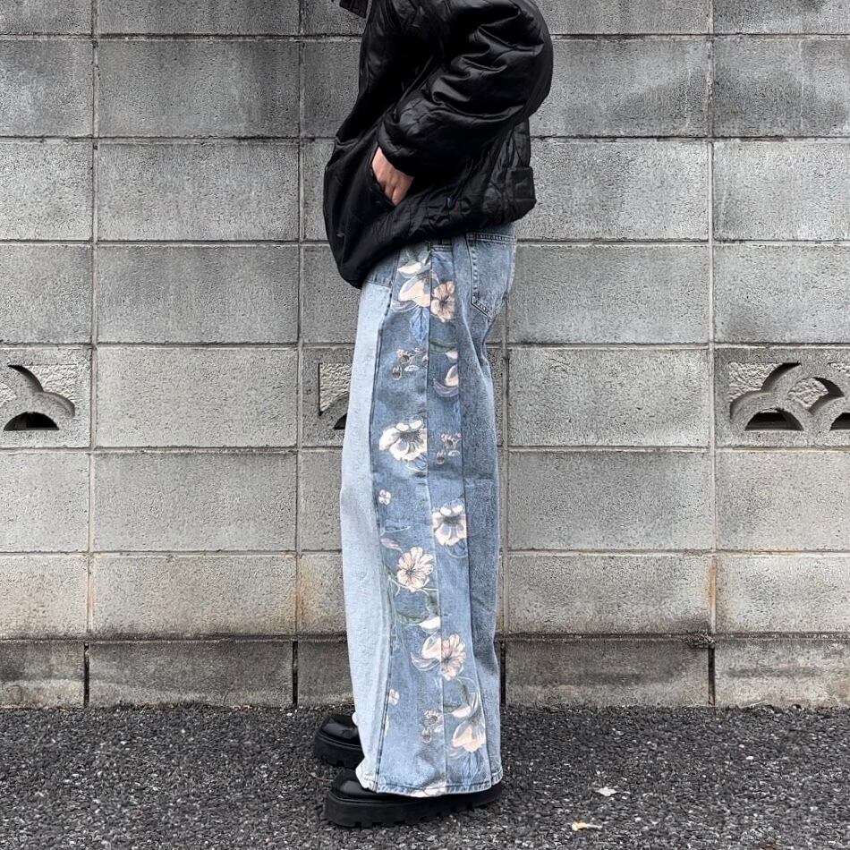 完全一点モノのリメイクパンツです。股上が深く、ストンっと落ちるようなシルエットです。